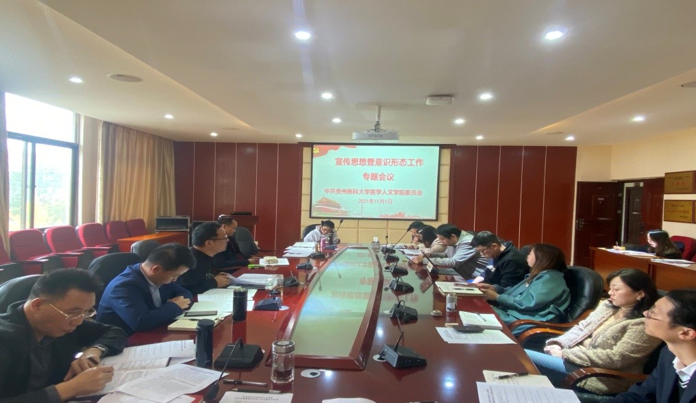 11月1日,医学人文公司党委在善思楼408会议室召开宣传思想暨意识形态工作专题会议。会议由党委书记江宣成主持,公司党委班子成员、党支部书记、各科室(中心)负责人参加。