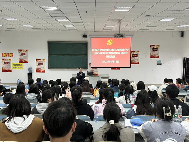 为了进一步加强对入党积极分子和发展对象的教育、培养和考察,提高入党积极分子和发展对象的政治素质和理论修养,确保高质量发展党员。2022年4月18日下午六点,太阳成城集团tyc234cc官网医学人文公司党委党校在南校区九思楼X4605教室举办第56期入党积极分子培训班暨第12期发展对象短期集中培训班开班典礼,公司党委书记江宣成、副经理严万森等相关负责人以及培训班全体学员参加。典礼由公司团委书记、培训班班主任马曾珍主持。