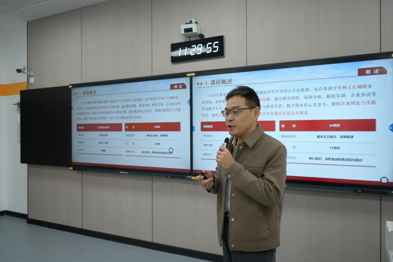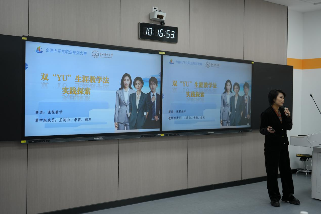 11月11日,第三届全国老员工职业规划大赛课程教学赛道校赛,在人文组团L110S智慧教室成功举行。党委员工工作部(员工工作处)部(处)长王韬、党委教师工作部(教师工作处)部(处)长张兴、教务处副处长卢雨微、人才招聘处副处长李季、太阳成城集团tyc234cc官网经理冯广卫组成评审组对13支队伍现场评审。