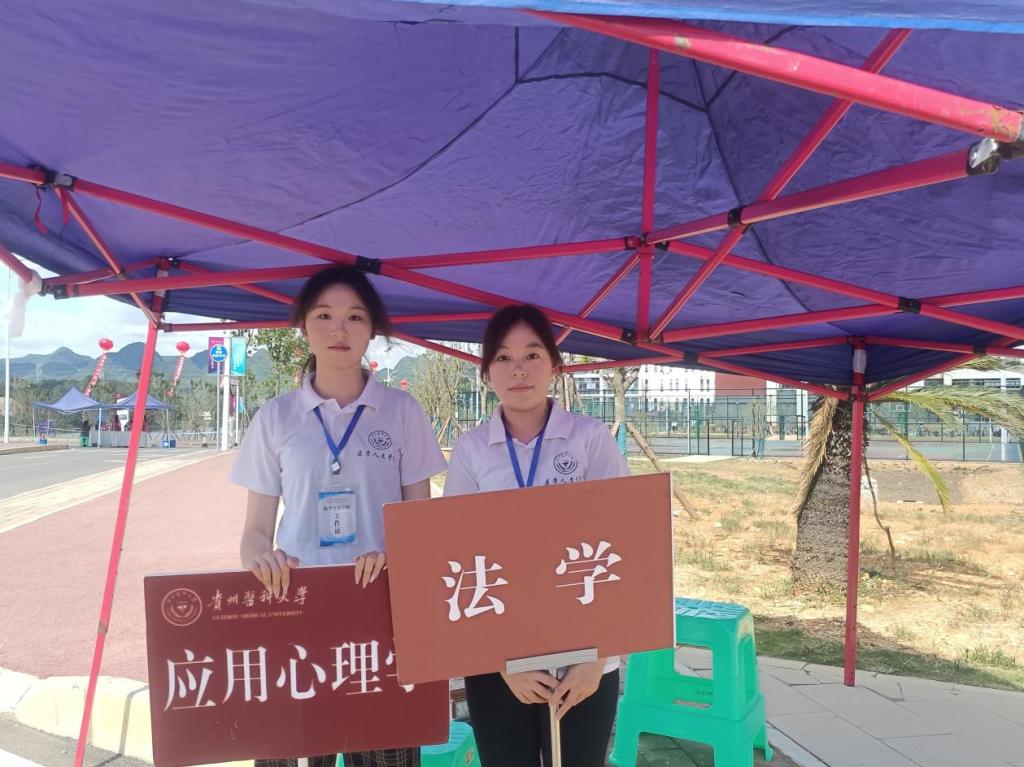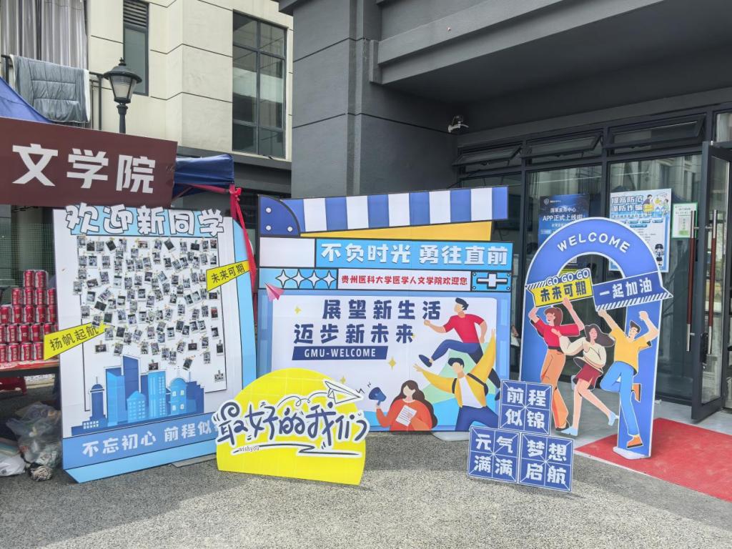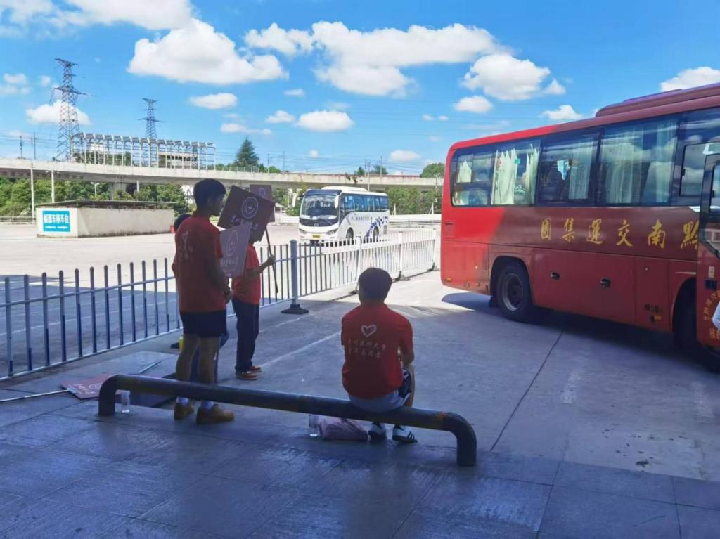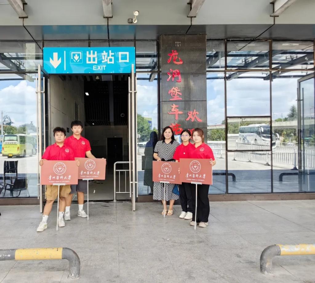 报到当天,公司老师和员工志愿者身穿统一的志愿者服装,在贵阳龙洞堡车站接站点参加全校迎新,志愿者手持引导牌,热情地迎接每一位新生,为他们踏入贵医的第一站保驾护航。