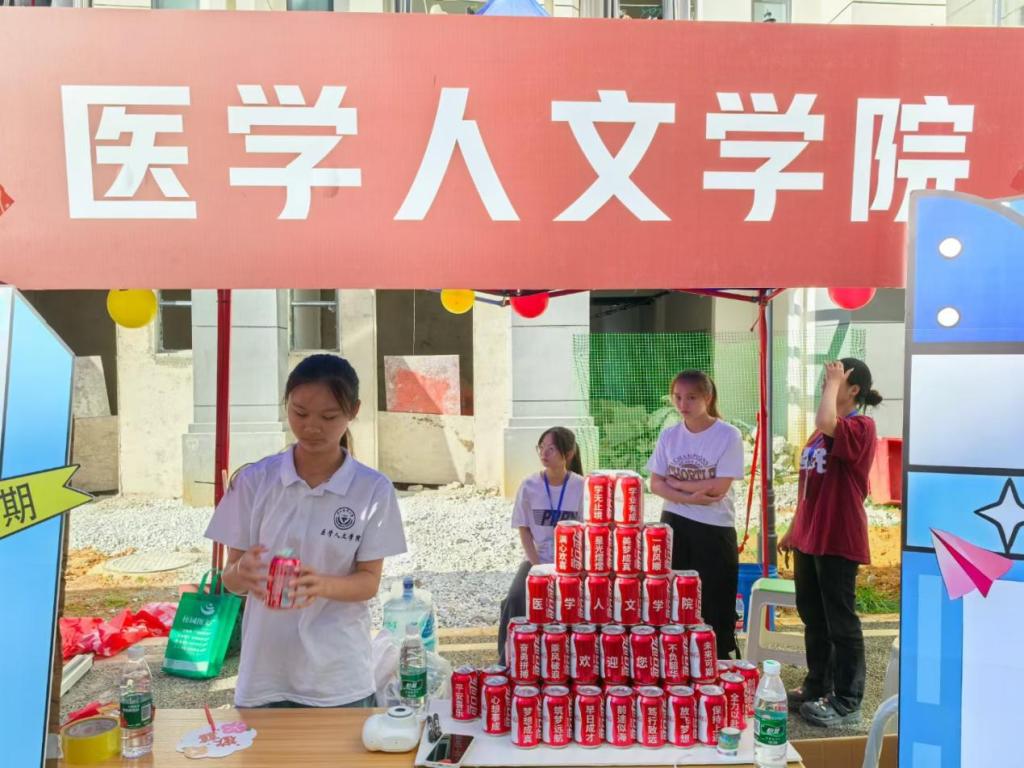 在公司新生报到点,考虑到天气炎热,公司为每一位新同学定制了个人姓名的可乐和带有祝福语的扇子,希望在炎炎烈日中为新生送去一丝凉爽。