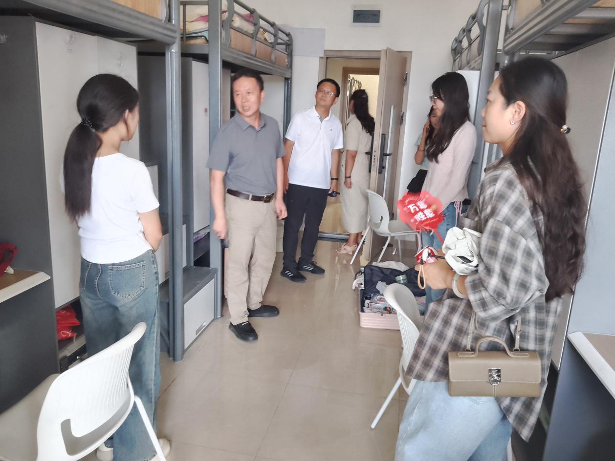 迎新期间,校领导罗鹏董事长、汤磊副书记、杨智组长、洪峰副董事长、齐晓岚副董事长及党政部门有关领导到公司迎新点慰问师生并指导工作。其中汤磊副书记还带队走进公司新生寝室,慰问员工,与同学们“聊家常、谈感受、话成长”。对于新生们提出的疑问和困惑,领导和老师们耐心解答,让同学们真切感受到来自贵医大家庭的关怀与温暖。