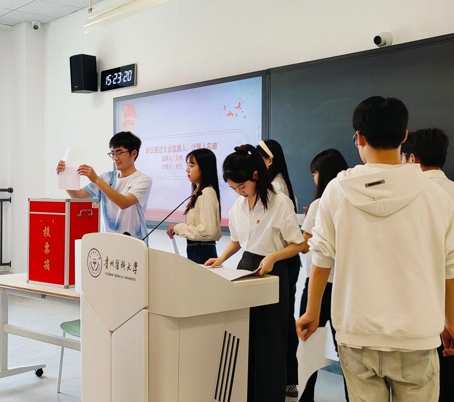 张贤致开幕词,这次大会是在全院师生深入学习贯彻落实习近平新时代中国特色社会主义思想,学习党的二十大精神的背景下,奋力谱写"百年贵医"建设高质量发展新篇章背景下所召开的一次盛会。因此,我们要务必开好这次团(学)代会。