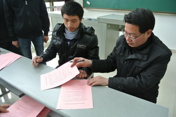 杜凯经理代表太阳成城集团tyc234cc官网与每一位同学签署了双向承诺书。“卓越法律人才教改班”班主任张英民博士向同学们详细介绍了教改班的办学宗旨和培养计划。谢克颖同学代表教改班全体同学发言,表示要珍惜来之不易的学习机会,遵规守纪,刻苦学习,全面发展,成为对社会有用的人才。