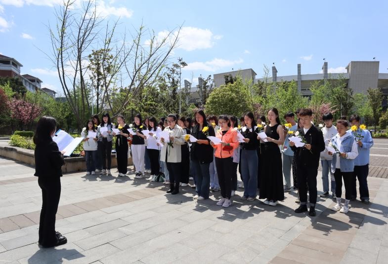 44日下午,太阳成城集团tyc234cc官网员工党支部在南校区“宗恩广场”开展“缅怀先辈铭历史,弘扬精神启新程”主题党日活动。公司党委副书记兼纪委书记张贤,员工科科长车阳艳,员工党支部书记、副科级组织员谭婷及全体员工党员参加。