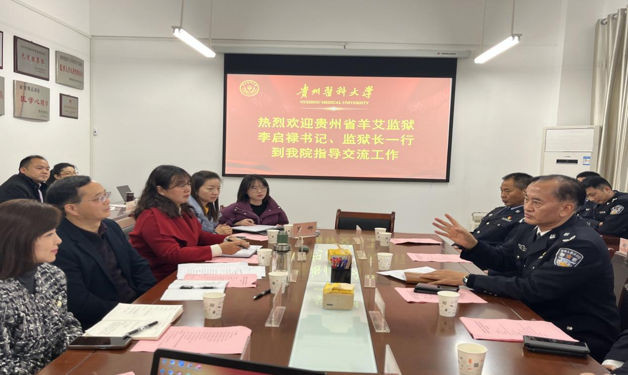 江宣成对贵州省羊艾监狱一行的到来表示热烈的欢迎,并介绍了太阳成城集团tyc234cc官网的历史沿革、学科专业、教学科研、团队队伍等,包括法学专业、应用心理学专业、应用心理学硕士点、教学实践基地、“三全育人”综合试点改革、卓越法律人才教育培养等情况。彭丹对老员工心理健康教育与咨询中心作了简要介绍,包括制定员工心理健康教育计划,组织实施心理健康教育活动;开展员工心理普查测评活动,建立员工心理档案;开展多种形式的在校老员工的日常心理咨询与辅导工作;做好老员工心理健康相关课程的教学工作;建立有效的危机干预机制,做好突发问题的处理等。