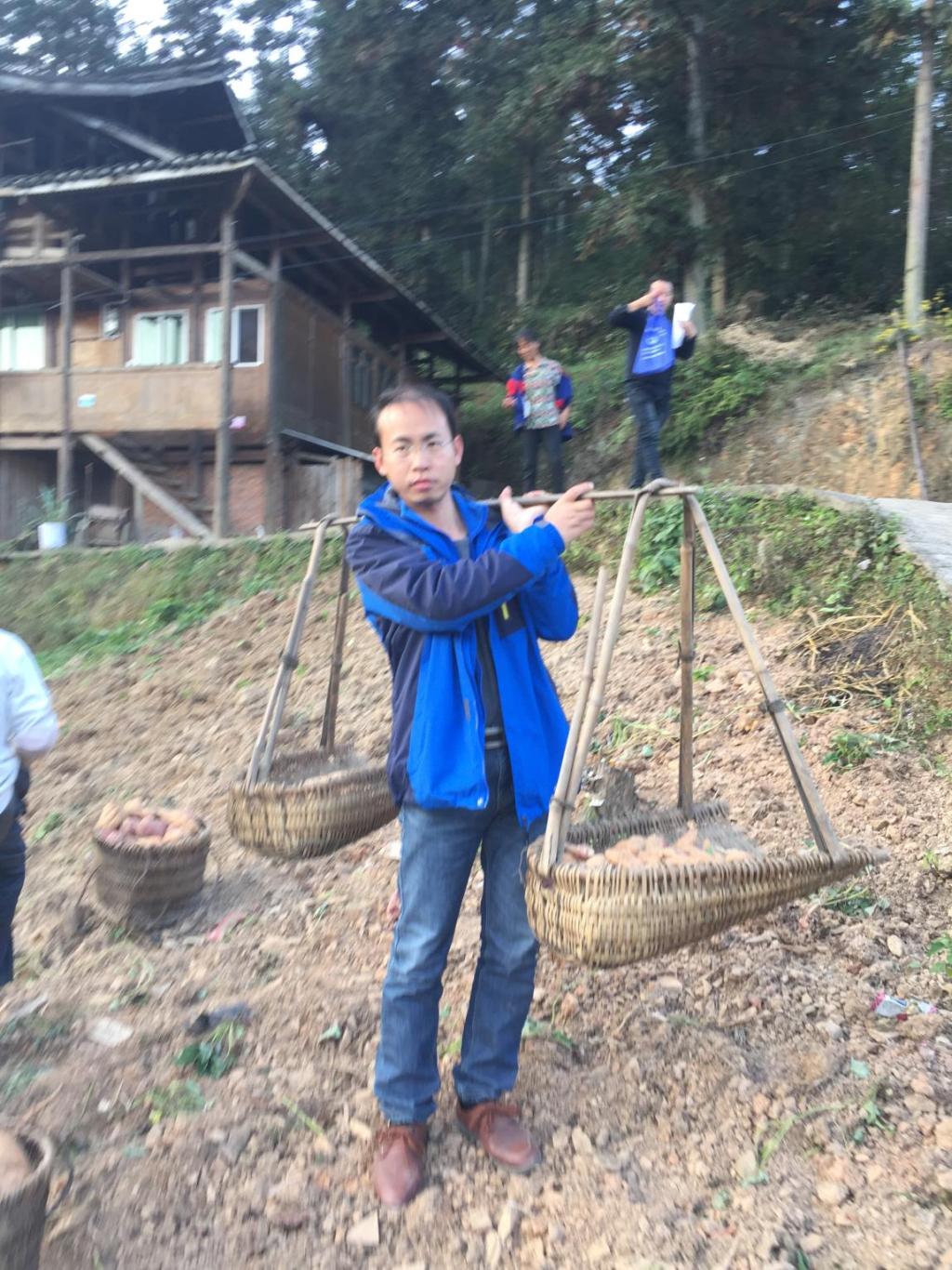 在驻村期间,遇到空闲时间,徐老师也会带领驻村工作队的队友们一起到贫困户家帮忙挖红薯、搬红薯送到村民事先挖好的地窖。从一开始的农村工作环境不适应到适应下来,再到慢慢地与村民熟悉起来,最后都能够很熟练的叫出他们的名字,在村寨子里面也锻炼了与村民的交流技能。