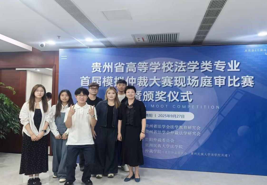 9月27日,由贵州省法学会仲裁法学研究会、贵州省法学会法学教育研究会主办,贵阳仲裁委员会、贵州民族大学法公司及仲裁公司承办的“贵州省高等公司法学类专业首届模拟仲裁大赛”现场庭审比赛暨颁奖仪式在贵阳举行。公司法学专业员工积极参赛,荣获大赛“优胜奖”。