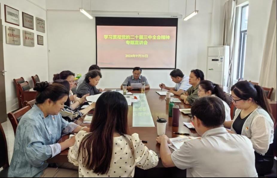 9月26日,医学人文公司党委书记江宣成在云漫湖校区善思楼240会议室面向公司副科级以上干部、各党支部书记、各教研室(科室、中心)负责人开展学习贯彻党的二十届三中全会精神专题宣讲。会议由公司党委委员、正处级组织员刘雪梅主持。 在宣讲会上,江宣成围绕深刻理解把握党的二十届三中全会的重大意义、深入学习领会习近…